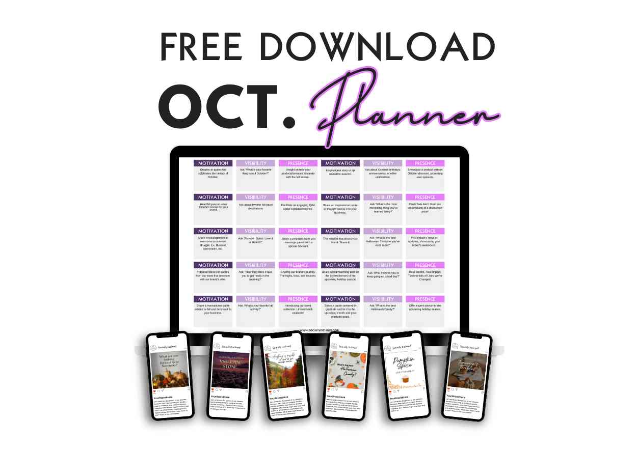 Grab the FREE October Social Media Post Planner with 30 October Post Prompts, 6 done-for-you posts, and so much more to help you grow your brand on social media!