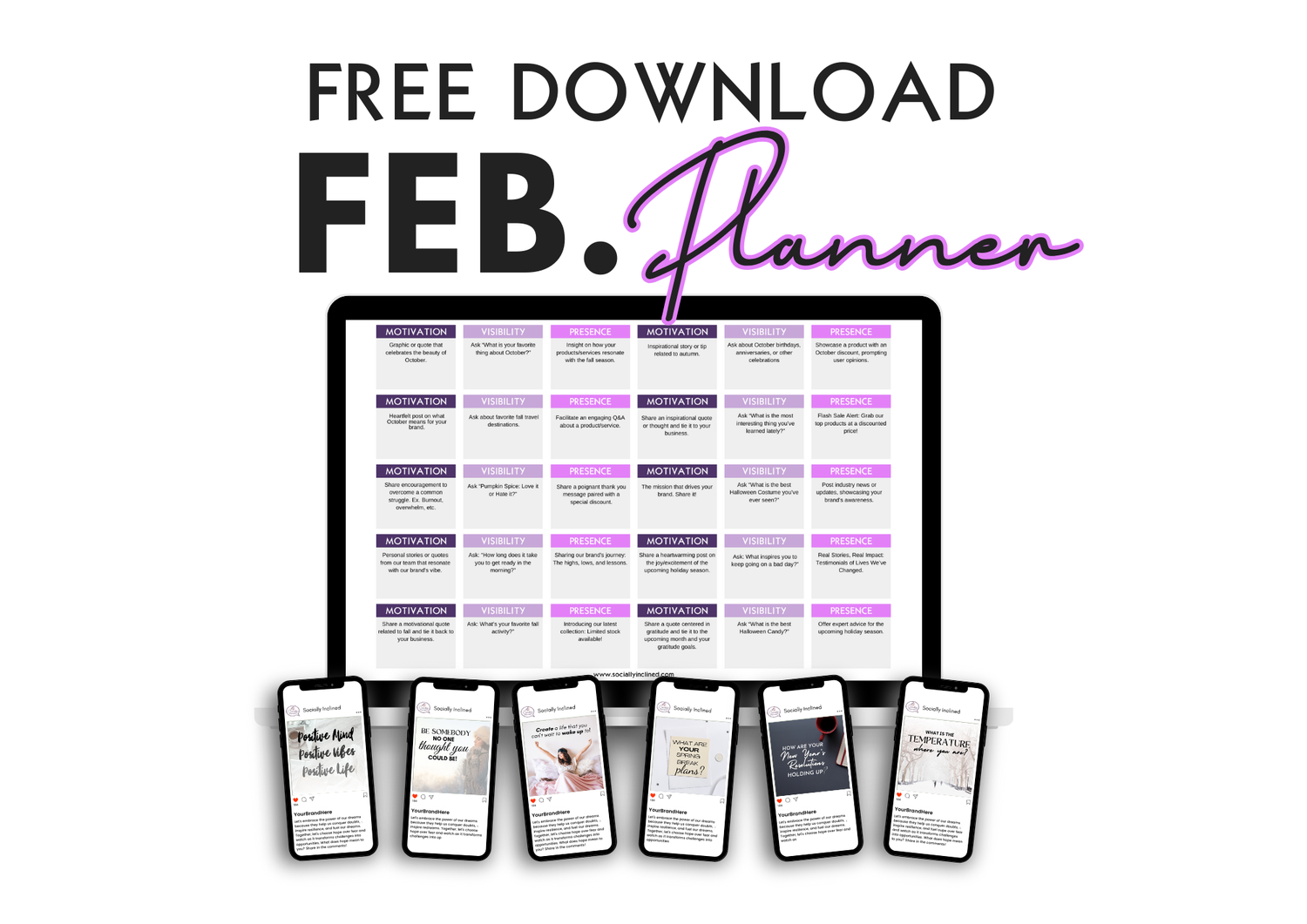 Grab the FREE February Social Media Post Planner with 30 February Post Prompts, 6 done-for-you posts, and so much more to help you grow your brand on social media!