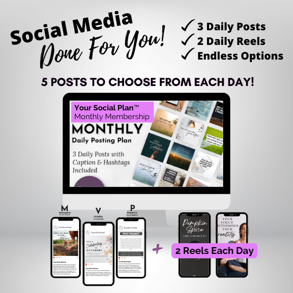 Your Social Plan is a monthly social media posting plan that's about to revolutionize your online presence! With a unique and powerful content formula that combines Motivational, Visibility, and Presence posts, Your Social Plan™ delivers a high-impact social media strategy that not only engages your audience but also drives growth.